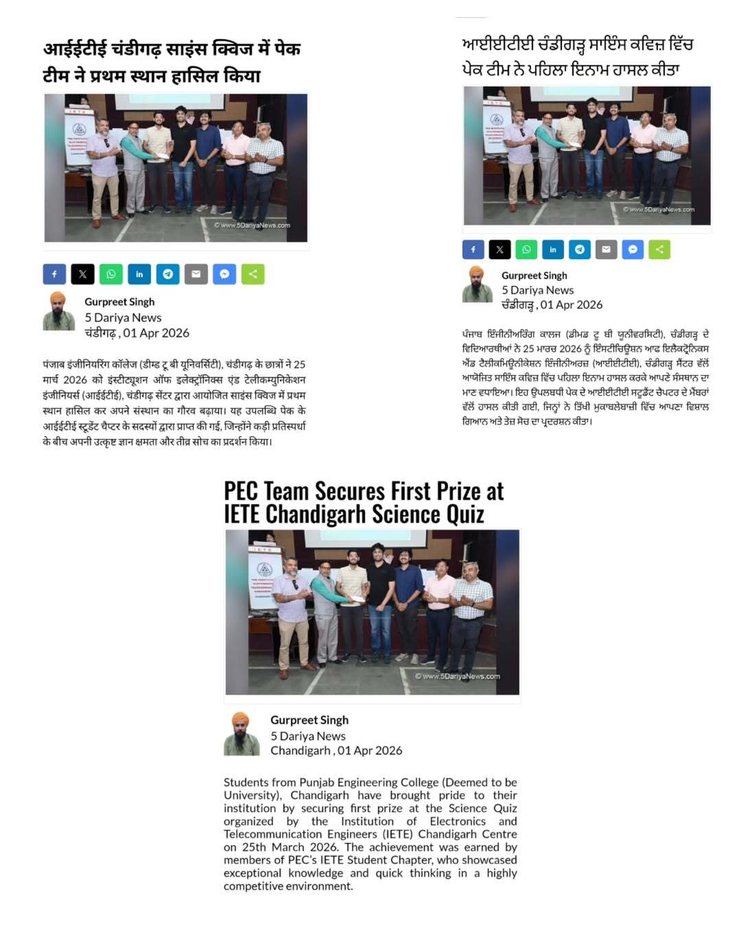Students from Punjab Engineering College secured first place...