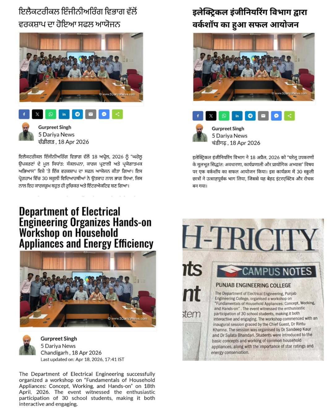 On April 18, 2026, the Department of Electrical Engineering at Punjab Engineering College (PEC) successfully conducted a specialized workshop titled "Household Appliances: Core Concepts, Working Mechanisms, and Practical Exercises."