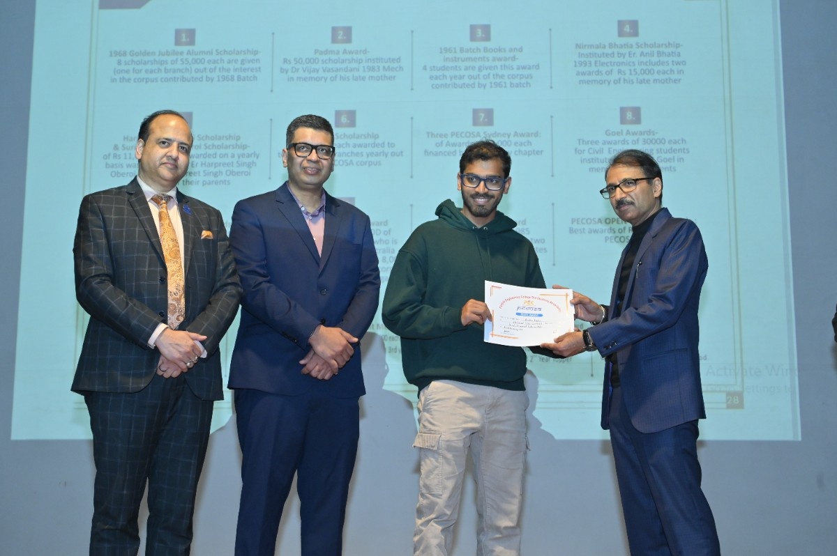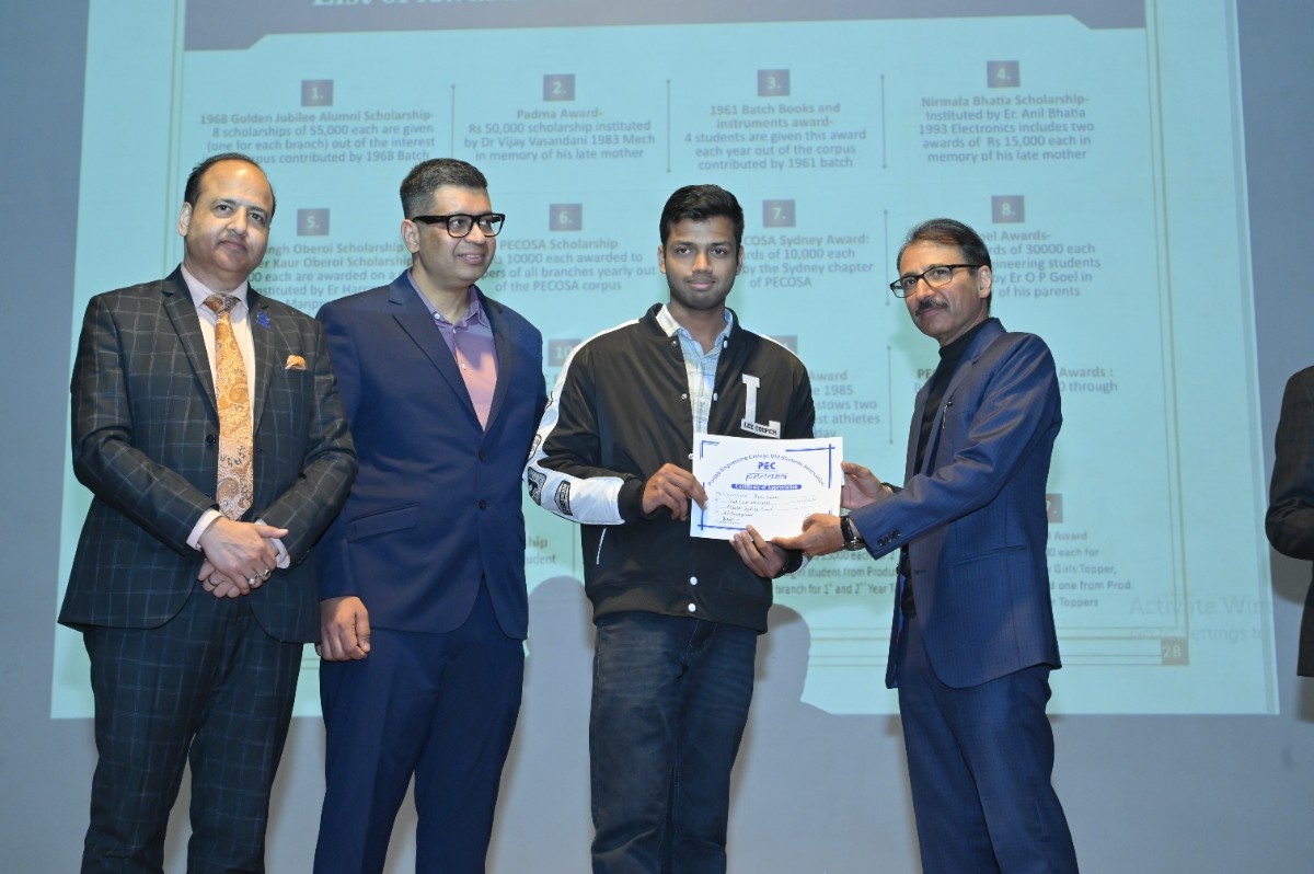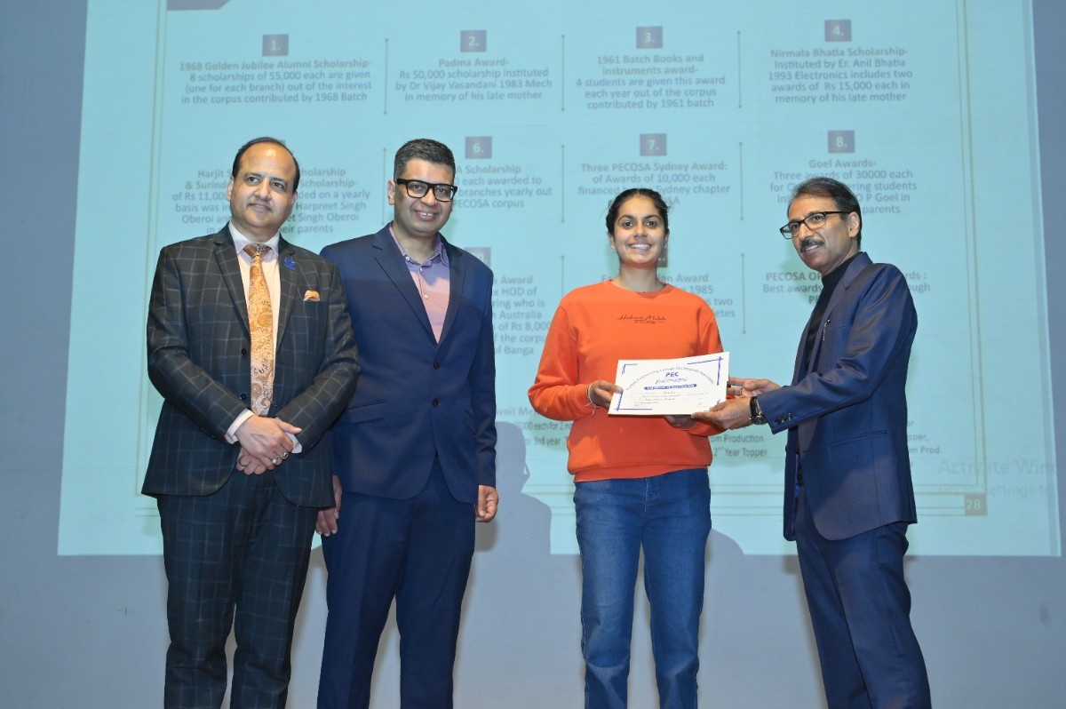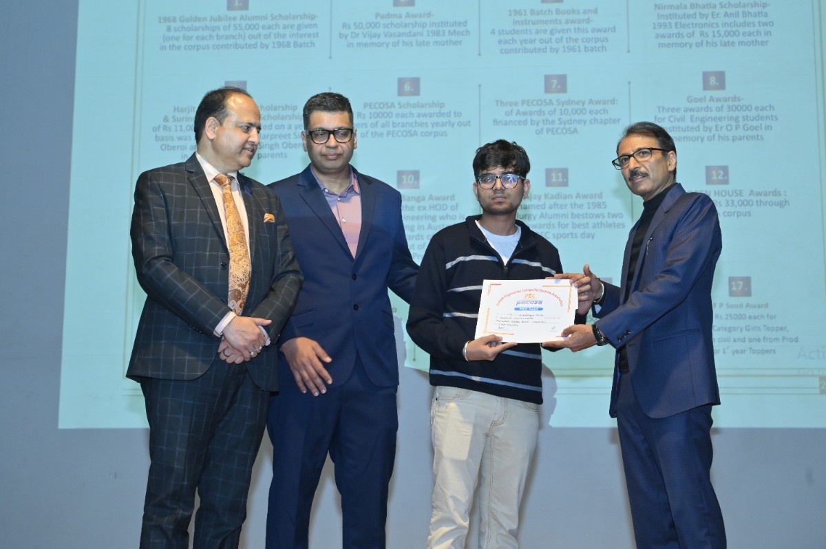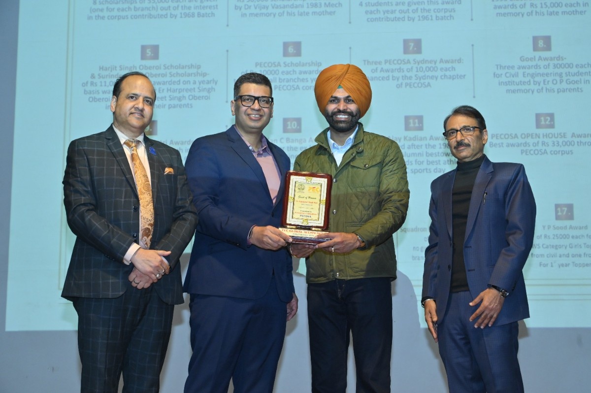Er. H.S. Oberoi reaffirmed that the bond with PEC remains timeless. Prof. Rajesh Kanda, Head of Alumni Relations, PEC, outlined key milestones, including MoUs with Power Grid Corporation of India, Central UP Gas Limited, and Indian Oil Corporation Limited. He shared that 215 scholarships were awarded in the past year, supported by an alumni corpus exceeding ₹6 crore—funding 48 scholarships annually through interest income—along with structured endowment policies to ensure sustainable growth.