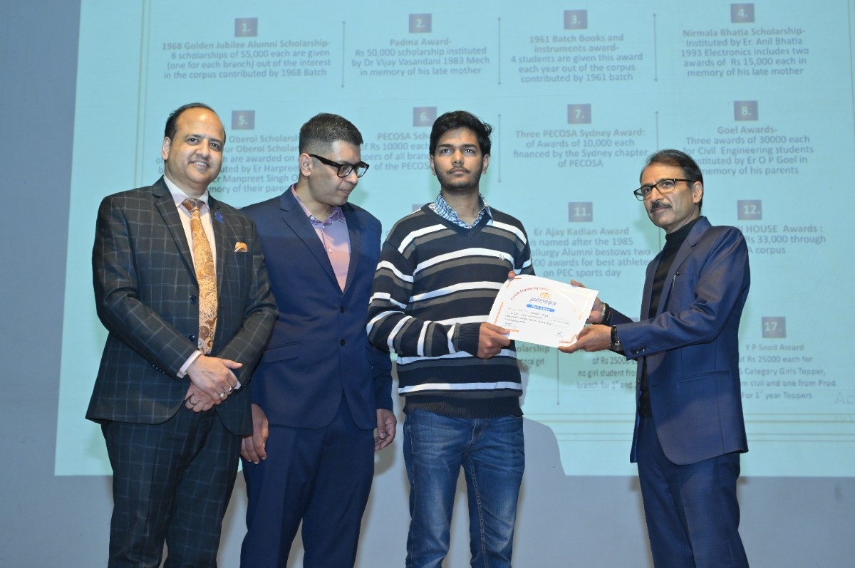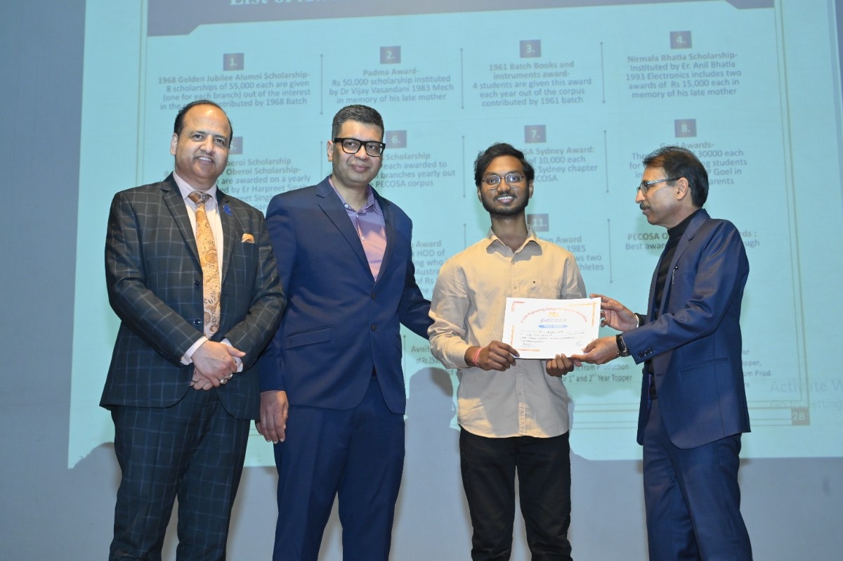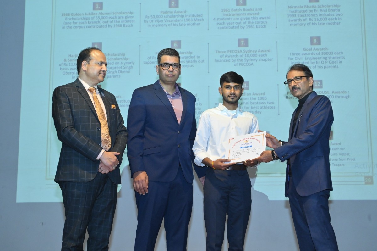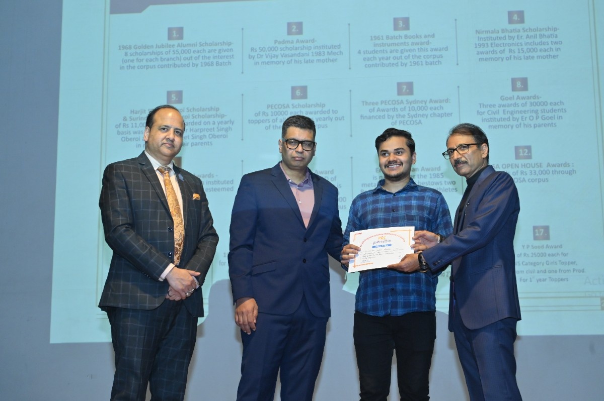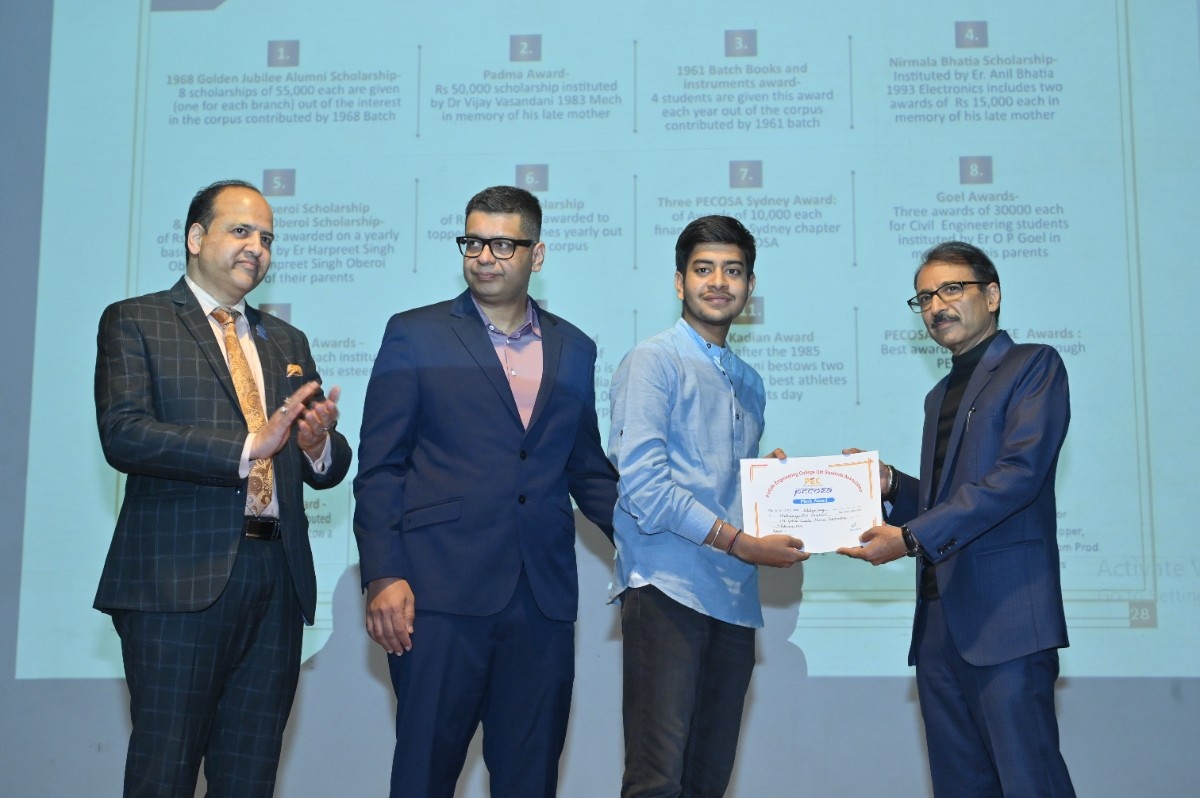 Er. H.S. Oberoi reaffirmed that the bond with PEC remains timeless. Prof. Rajesh Kanda, Head of Alumni Relations, PEC, outlined key milestones, including MoUs with Power Grid Corporation of India, Central UP Gas Limited, and Indian Oil Corporation Limited. He shared that 215 scholarships were awarded in the past year, supported by an alumni corpus exceeding ₹6 crore—funding 48 scholarships annually through interest income—along with structured endowment policies to ensure sustainable growth.