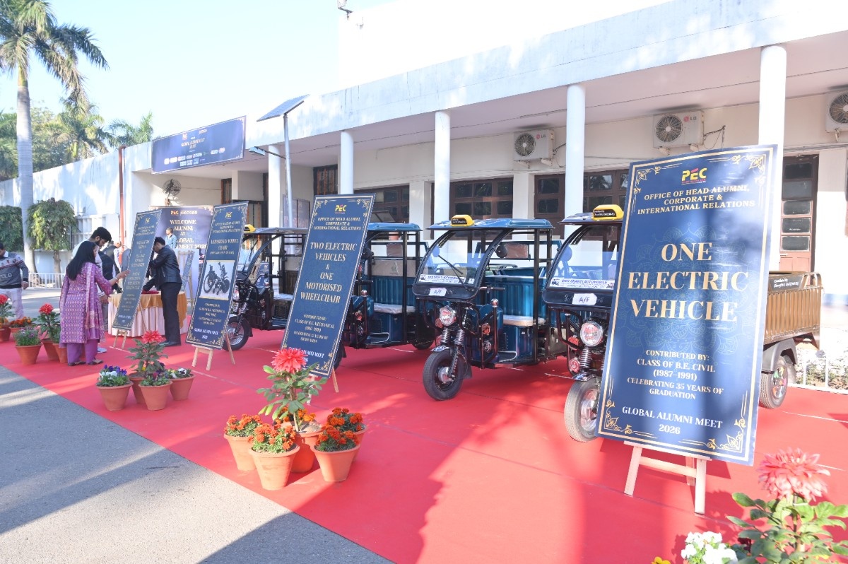 A major highlight of the Meet was the signing of the MoU between PEC and the TTC Group to strengthen research collaboration, internships, and industry exposure for students in AI and LegalTech. Signed on the morning of 14th February, 2026, the MoU includes XL Scout’s intent to hire 50 PEC students over the next 3–4 years. The signing ceremony was graced by Dr. Rajesh Kumar Bhatia; Prof. Rajesh Kanda; Prof. J.D. Sharma; Dr. Jimmy Karloopia; Ms. Saruchi Sharma; and Er. Jatin Talwar, along with PECOSA office bearers. Along with this, The Batch of 1991, through the Office of Alumni, Corporate and International Relations, generously donated four E-Vehicles and one wheelchair, at a total cost of ₹ 11 Lakh plus.