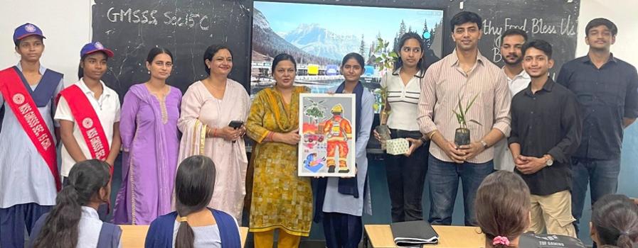 The Fellows conducted climate-awareness sessions across Government Schools in Sectors 33, 19, 15-C, and 16, in collaboration with My Bharat Chandigarh and NSS. Students engaged with climate science through storytelling, visual models, real-life examples, and structured discussions. Painting conventions and quizzes related to the theme of climate change were also included in the sessions to make them interesting and interactive. Project Greenwatch also translated awareness into action through “Ek Ped Maa Ke Naam” plantation drives, enabling students to plant saplings and practice hands-on environmental stewardship.